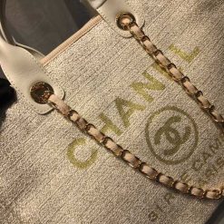 Chanel Deauville Tote Tweed Canvas Bag Fall/Winter Collection. Beige/Cream/Gold/Multi For Women 15in/38 cm