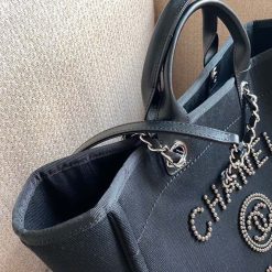 Chanel Large Deauville Pearl Tote Bag Black For Women. Women’s Handbags. Shoulder Bags 15in/38cm A66941