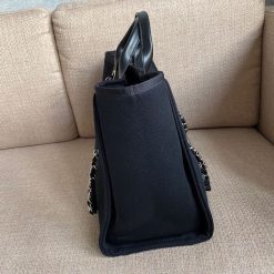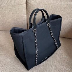 In 2020 Chanel released a limited edition version of the Deauville tote bag which features the logo in imitation pearls on the front. The pearl logo version of the bag is available in two colors. black. Ecru beige and has since become an influencer must-have. The Deauville tote isn’t vastly different in size to the small. but it does feature the added bonus of leather handles for carrying the bag in hand or comfortably in the crook of the elbow. The longer shoulder chain straps are still an option too. so this can be worn in that way too.