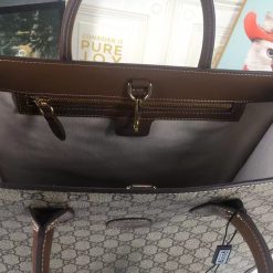 The Interlocking G has remained one of the most symbolic codes of the House since its introduction. The distinguishing emblem appears as a leather detail atop this medium tote. Completing the design’s logo feel. the style is crafted from monogram canvas.